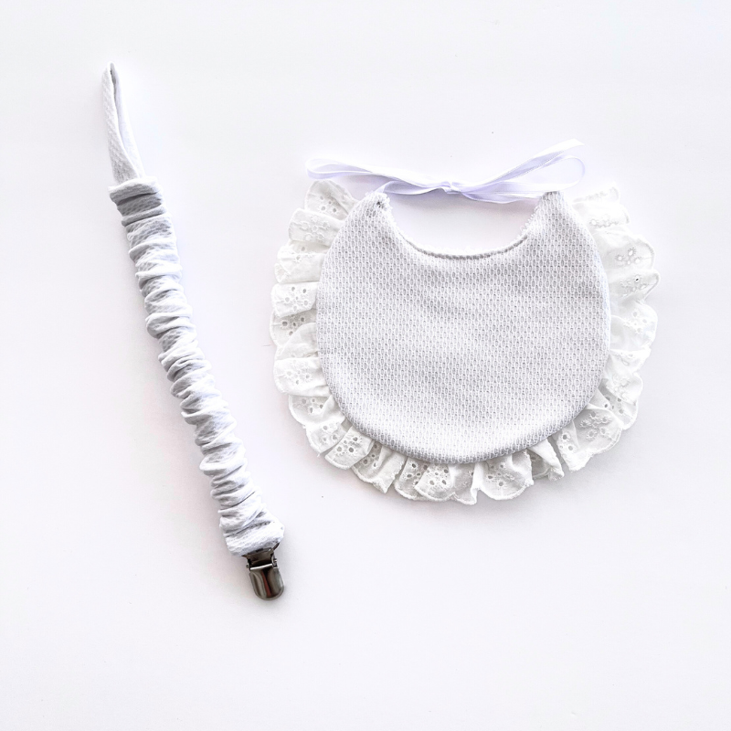 Babero de piqqué con tira bordada y parte trasera de rizo de toalla,