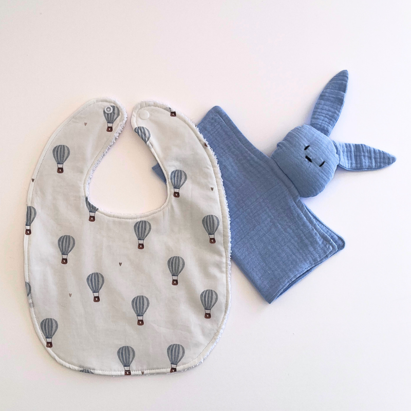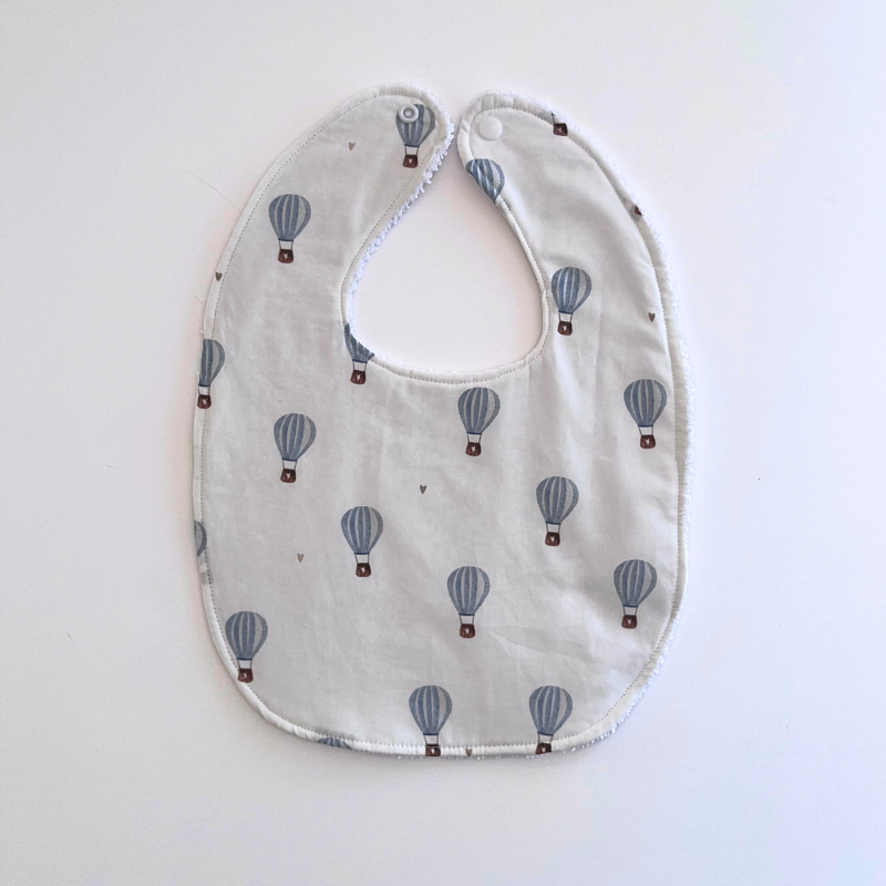 BABERO CON TELA DE ALGODÓN DE GLOBOS Y REVERSO DE RIZO DE TOALLA.