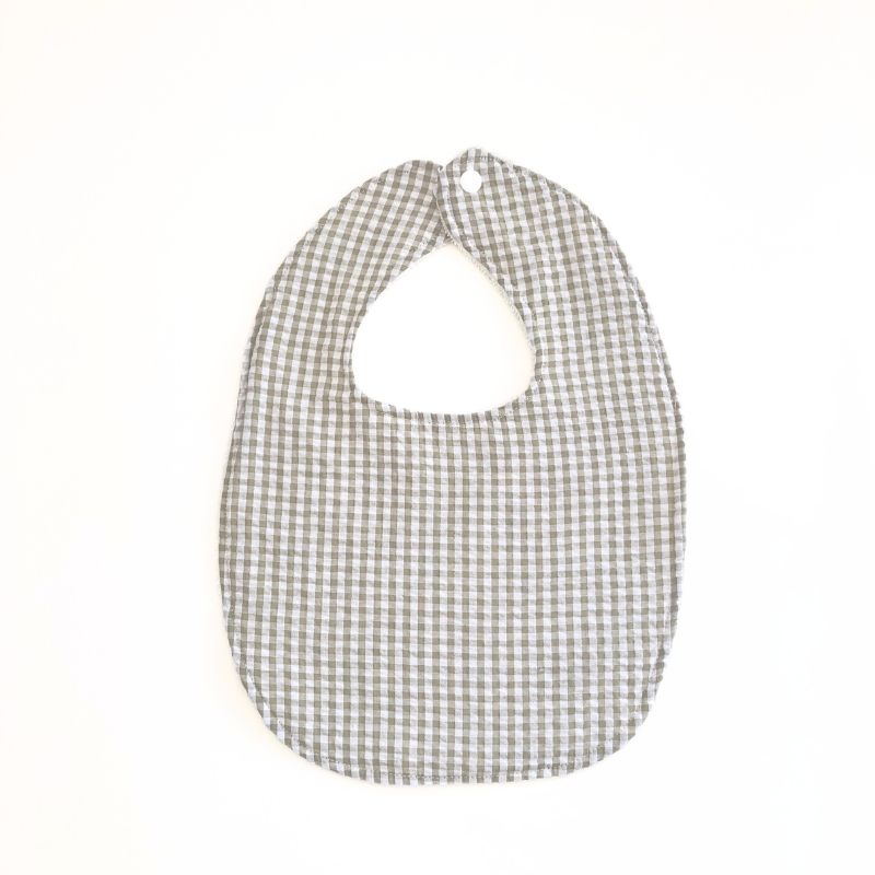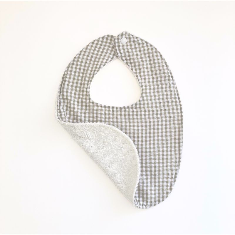 BABERO CON TELA VICHY VERDE OSCURO Y REVERSO DE RIZO DE TOALLA.
