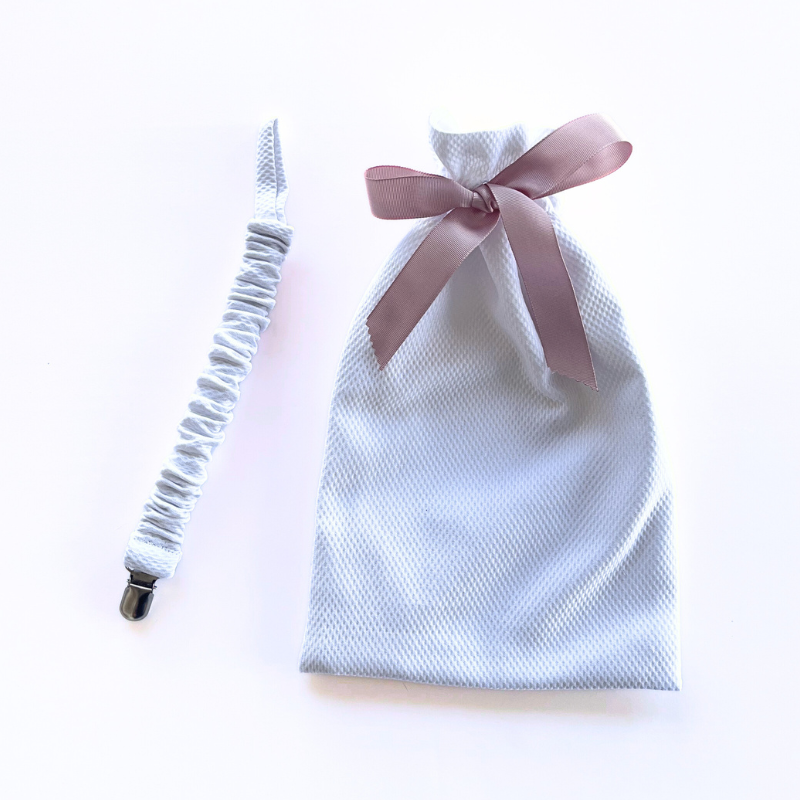 Práctica bolsa realizada en piqué disponible con lazo rosa o azul.